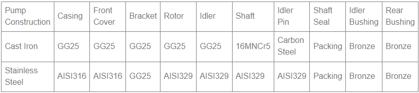 Tabla de Materiales de la Bomba