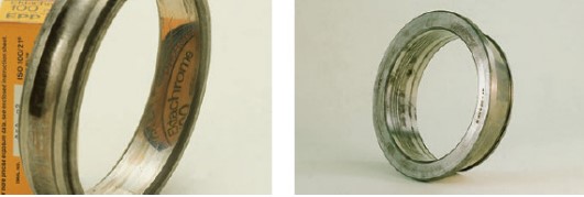 El gripado provoca el desprendimiento parcial de los anillos interior y exterior o de los elementos rodantes. Las causas pueden ser una interferencia insuficiente, una fijación incorrecta de los casquillos, un aumento anormal de la temperatura y cargas excesivas.