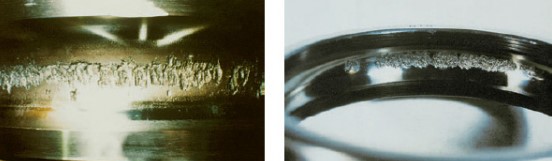 Los parches de descamación o pelado diminutos, con grietas finas visibles, son indicativos de pelado. Las causas son la infiltración de cuerpos extraños y una lubricación insuficiente.