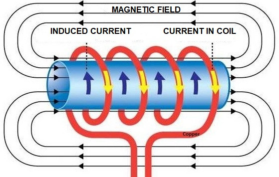 Cuanto más corriente pase por el conductor, mayor y más fuerte será el campo magnético alrededor del mismo. Cuando el flujo de corriente eléctrica en el conductor se cambia a la dirección opuesta, también cambia el campo magnético. El paso de un campo magnético alterno a través de un material conductor genera corrientes eléctricas localizadas dentro del metal. Las corrientes eléctricas generadas se denominan corrientes de Foucault. Cuanto más fuerte es el campo magnético, más corrientes de Foucault se generan.