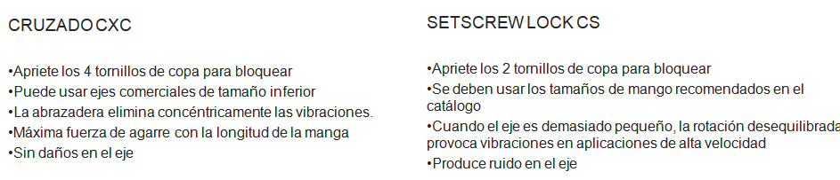 Comparación de CROSSLOC y SETSCREW LOCK